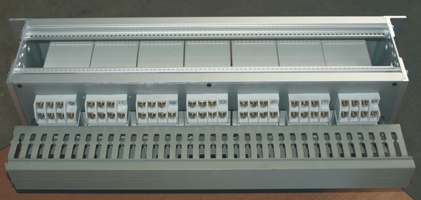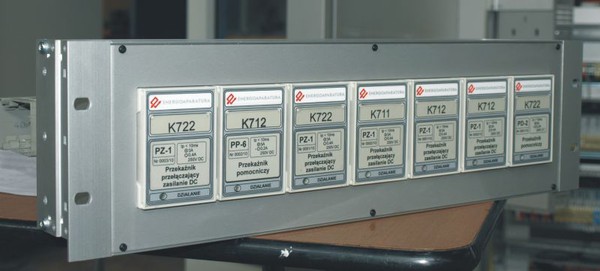 Ramka kasety unieruchamia i stabilizuje przekaźniki, a także umożliwia wykonanie opisu. Kaseta wyposażona jest w gniazda zatablicowe typu GZ14Z co sprawia, że jest bardzo dobry dostęp do zacisków od strony tylnej. Takie rozwiązanie ułatwia przeprowadzenie ewentualnych pomiarów na zaciskach przekaźników. Kaseta została wyposażona w korytko umożliwiające schowanie przewodów. Standardowo w kasetach można umieścić 7 przekaźników w obudowie CN55AK. Inne rozwiązania są na zamówienie wg projektu.
