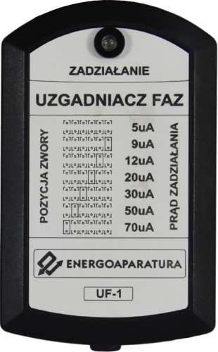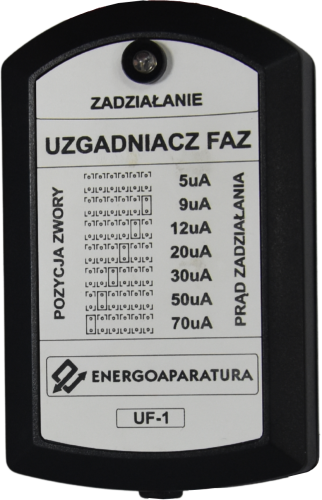 Uzgadniacz Faz UF-1 jest to urządzenie do sygnalizowania niezgodności faz. Niezgodność faz sygnalizowana jest poprzez diodę LED. Dioda LED świeci w przypadku niezgodności faz.
