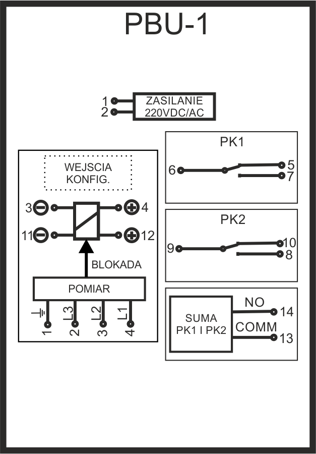 Przekaźnik blokady uziemnika PBU-1 służy do podawania napięcia na cewkę blokującą uziemnika po stwierdzeniu braku napięcia na szynach pola uziemianego. Zastosowanie urządzenia zapobiega przed przypadkowym uziemieniem szyn pól będących pod napięciem. Podanie napięcia na cewkę odblokowującą uziemnik następuje po naciśnięciu przycisku odblokowanie znajdującym się na froncie urządzenia lub po pobudzeniu wejścia dwustanowego w urządzeniu, tylko wtedy gdy urządzenie stwierdzi brak napięcia na szynach. Czas podawania napięcia na cewkę jest konfigurowany programowo. Możliwe jest skonfigurowanie urządzenia tak aby w sposób ciągły badało obecność napięcia i w przypadku jego braku podawało automatycznie napięcie na cewkę blokującą uziemnika.