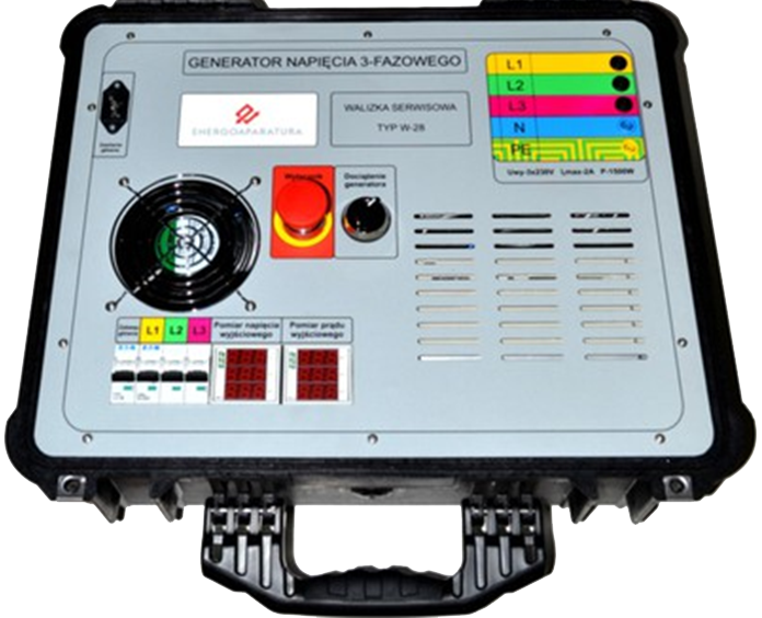 Walizka serwisowa typu W-28 została zaprojektowana i wyprodukowana na specjalne życzenie grup zajmujących się uruchamianiem obiektów energetycznych. Przeznaczona jest przede wszystkim do zasilania urządzeń trójfazowych w miejscu gdzie nie ma dostępu do sieci trójfazowej. Moc urządzenia pozwala na zasilanie odbiorników o łącznej mocy 1,5kW.