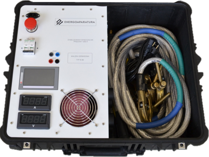 Walizka serwisowa W-36 przeznaczona jest do badania obwodów prądowych. Umożliwia wymuszanie przepływu stabilizowanego prądu do 1250A. Dla regulacji automatycznej możliwe jest wymuszanie dwuetapowe. Wartość prądu i czas trwania etapów są konfigurowalne.