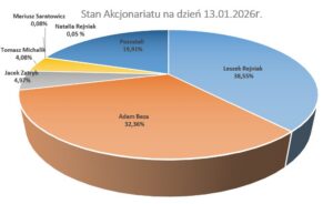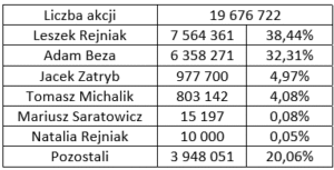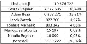 Dane dotyczące struktury akcjonariatu przedstawiono na podstawie informacji otrzymanych przez spółkę w trybie art. 69 ust. 1 ustawy o ofercie publicznej i warunkach wprowadzania instrumentów finansowych do zorganizowanego systemu obrotu oraz o spółkach publicznych oraz w trybie art. 19 Rozporządzenia Parlamentu Europejskiego i Rady (UE) nr 596/2014 (Rozporządzenie MAR).